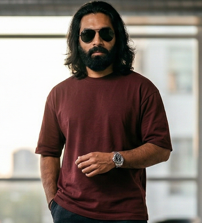 Men’s T-Shirt – GNB Royal Maroon Oversized Heavy Tee